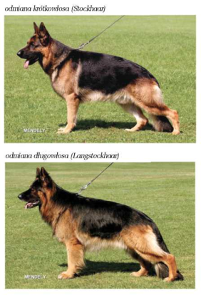 Sierść: Owczarki niemieckie hodowane są w dwóch odmianach – krótkowłosej i długowłosej, w każdym przypadku z podszerstkiem.